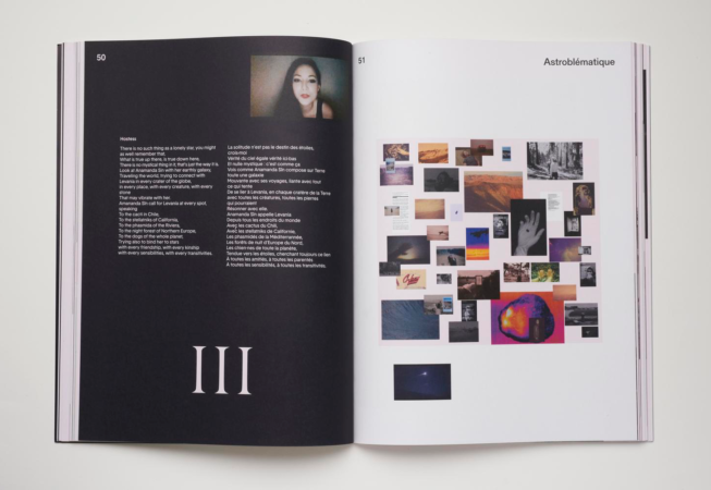 Notre civilisation semble avoir perdu quelque chose de fondamental dans son rapport quotidien avec le ciel étoilé. De ce fait discret, qui met en lumière les destructions matérielles et spirituelles de nos sociétés, doit procéder une nouvelle configuration de l’imaginaire, une zone à rêver où se forment de nouvelles mythologies peuplées de figures hybrides, pour inventer un nouveau pacte avec le cosmos. Ainsi, avec la figure terrestre d’Anamanda Sîn, on découvrira une nouvelle sensibilité, où les météorites constituent le lien entre le passé et l’avenir, la terre et le ciel, l’art et la science, le non-humain et l’humain.