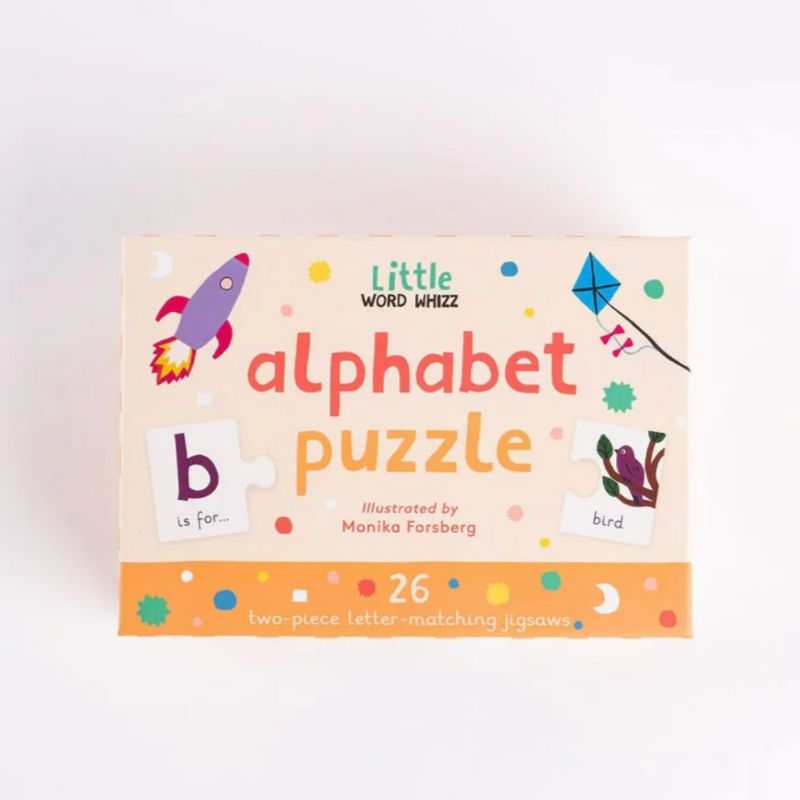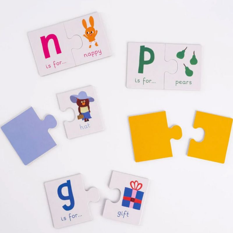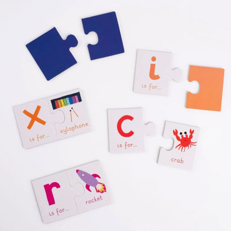 Ce coffret contient 26 puzzles individuels pour encourager la reconnaissance des lettres et des sons en anglais. Chaque puzzle de deux pièces comporte une image à associer à chaque lettre de A à Z, ce qui favorise le développement du langage et de la lecture.