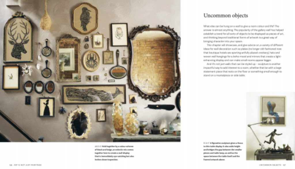 Rachel Loos explore ensuite la façon de commencer une collection, y compris des conseils pour adapter l’art à l’ambiance d’une pièce et pour acheter en respectant un budget. Comment encadrer et accrocher des oeuvres. Enfin, dans L’art n’est pas seulement une peinture, Rachel étudie comment exposer des objets que vous ne considérez peut-être pas comme de l’art, tels que des assiettes décoratives, des chapeaux ou des objets trouvés dans la nature. Dans chaque chapitre, des experts et des amateurs d’art nous ouvrent les portes de leur propre maison et nous font part de leur expérience.