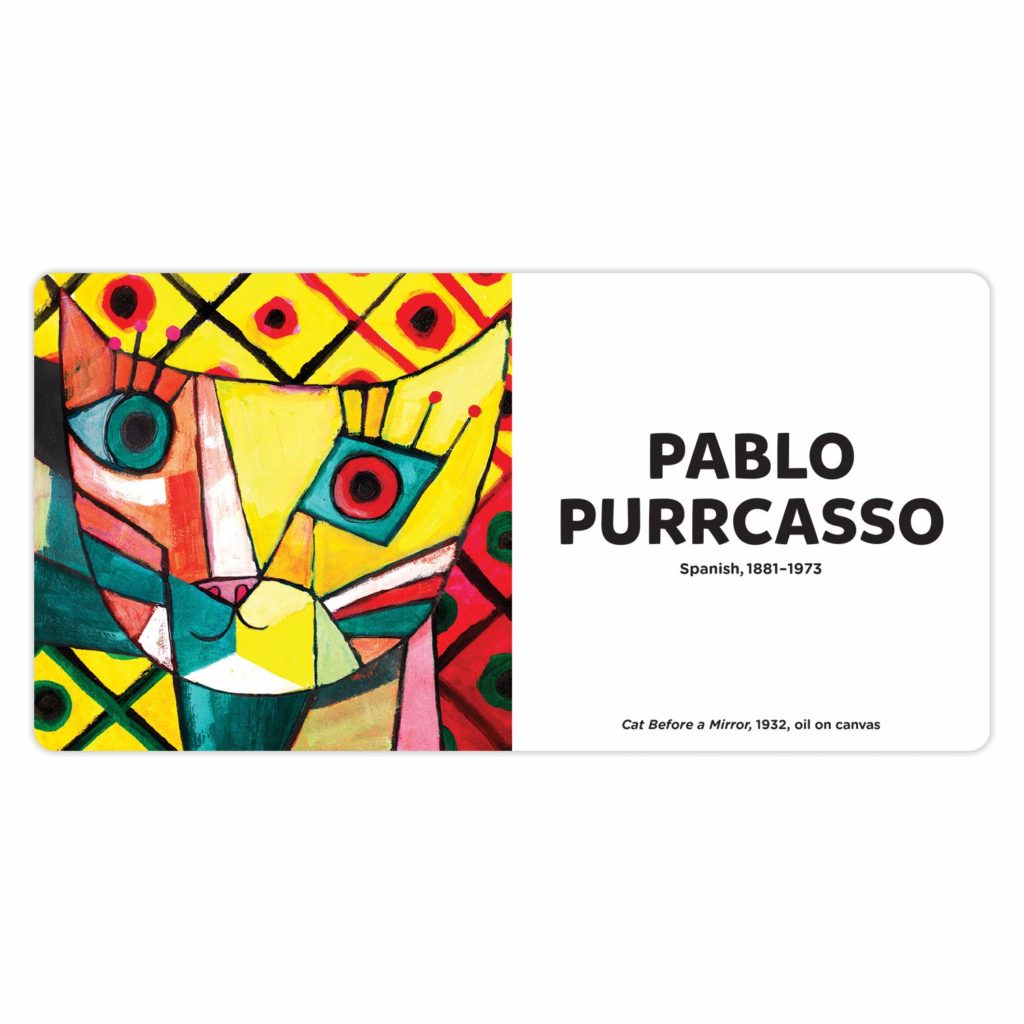 Une introduction à Pablo Purrcasso, Monet à griffes, Frida Catlo et bien d’autres miaous de l’art moderne! Chaque diffusion présente un chat illustré dans le style d’un artiste moderne emblématique + noms d’artiste et titres d’œuvres d’art avec des jeux de mots hilarants pour chats!