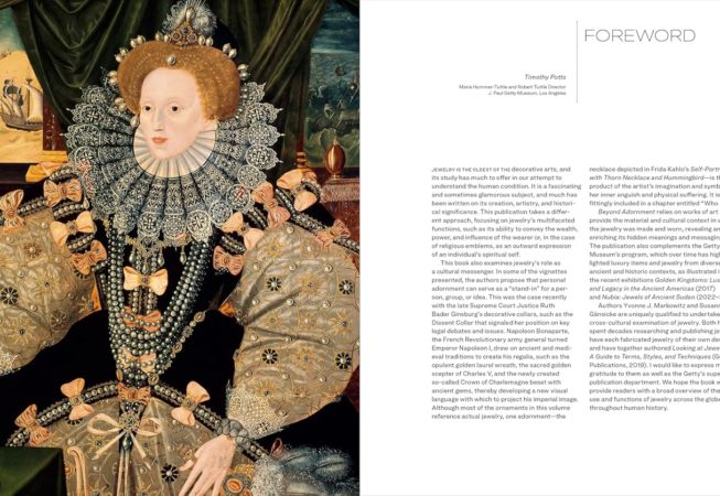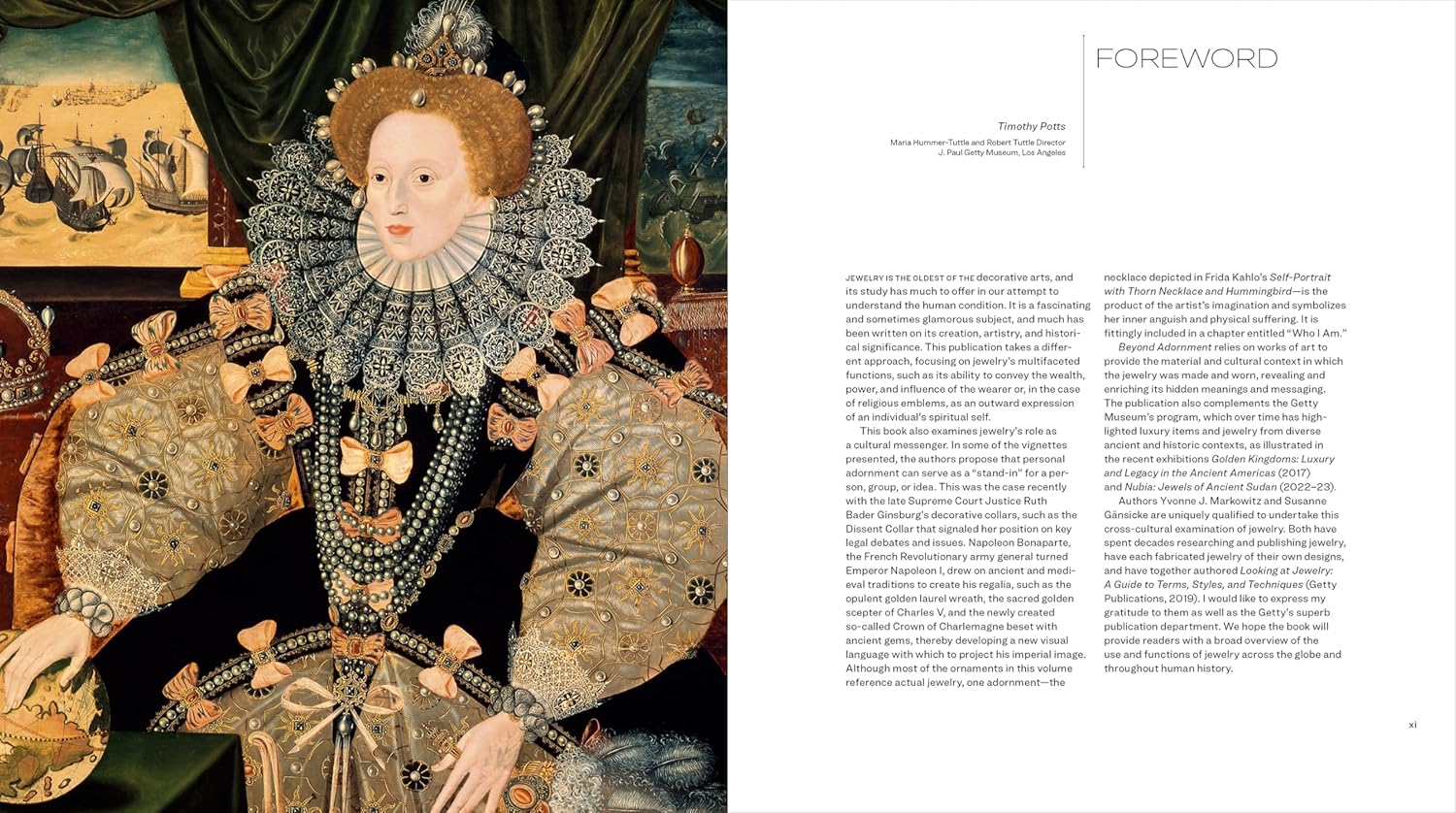 Les représentations artistiques de la figure humaine – portraits, sculptures et autres supports – dans une série d’images allégoriques, historiques et religieuses mettent souvent en valeur des bijoux. Les ornements représentés dans ces créations offrent une abondance d’informations qui nous permettent non seulement de mieux comprendre le sujet, mais aussi d’avoir un aperçu de l’imagination de l’ar-tiste. Les bijoux nous permettent de mieux apprécier les œuvres d’art parce qu’ils sont visuellement attrayants, sensuels et chargés d’un éventail d’associations et de significations symboliques.