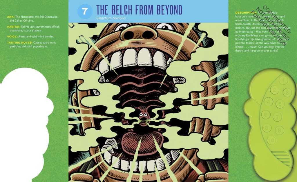 Dans la tradition sacrée des pets les plus vendus: un guide de terrain, un guide hilarant qu’identifie les caractéristiques, l’habitat, la voix et les «notes de dégustation» de 10 émissions orales gazeuses. L’appareil rotatif alimenté par batterie reproduit le son de chaque émission avec une précision alarmante, tandis que des illustrations extrêmement drôles capturent de façon colorée chaque rot à son moment d’arrivée et la dévastation qui en découle. Imprimé sur du papier cartonné durable, c’est un divertissement pur et débridé pour l’enfant qui rit en chacun de nous. Lâchez-vous!