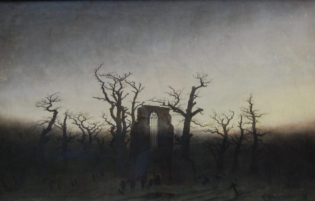Surtout connu pour ses paysages atmosphériques mettant en vedette des figures contemplatives qui se découpent sur le ciel nocturne et les brumes matinales, Caspar David Friedrich (1774-1840) est devenu majeur aux côtés d’un mouvement philosophique romantique allemand qui voyait la nature comme un tout organique et interconnecté. Les naturalistes de son entourage pensaient que les observations sur les règnes animal, végétal et minéral pouvaient conduire à des conclusions sur la vie humaine. Beaucoup de peintures ultérieures souvent négligées de Friedrich reflètent son engagement avec ces idées philosophiques en se concentrant sur les arbustes, les arbres et les rochers isolés. D’autres revisitent des compositions antérieures ou des motifs iconographiques mais métamorphosent subtilement les figures humaines auparavant distinctes dans le paysage naturel.