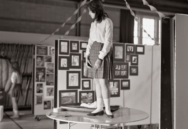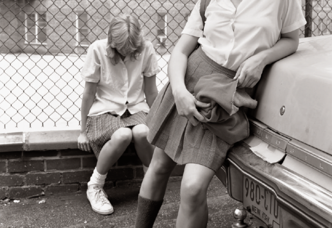 « Après la cérémonie commémorative de Garry Winogrand en mars de cette année-là, et une tempête de neige exceptionnelle à New York en cette chaude journée de printemps, j’ai pris le métro RR jusqu’à Bay Ridge, Brooklyn, pour rendre visite à mon professeur de lycée, l’artiste Len Bellinger. Comme d’habitude, j’avais mon appareil photo 8X10 et ses supports dans un sac à dos, le trépied pendant sur le côté. En tant qu’étudiante assidue, j’ai profité de l’occasion pour photographier mon alma mater, un lycée catholique pour filles, en grande partie italo-américain. J’ai été immédiatement frappée par un sentiment de reconnaissance et de terreur. Je suis retournée faire des photos à de nombreuses reprises au cours des mois suivants, sachant intuitivement qu’il y avait quelque chose d’important à déballer pour moi. Quelques années auparavant, entre ces murs, j’avais vécu ma vie d’adolescente, une période de joie intense et de chagrin insondable. Sans hésitation, ce jour de printemps, j’ai sauté de la falaise. J’étais amoureuse.