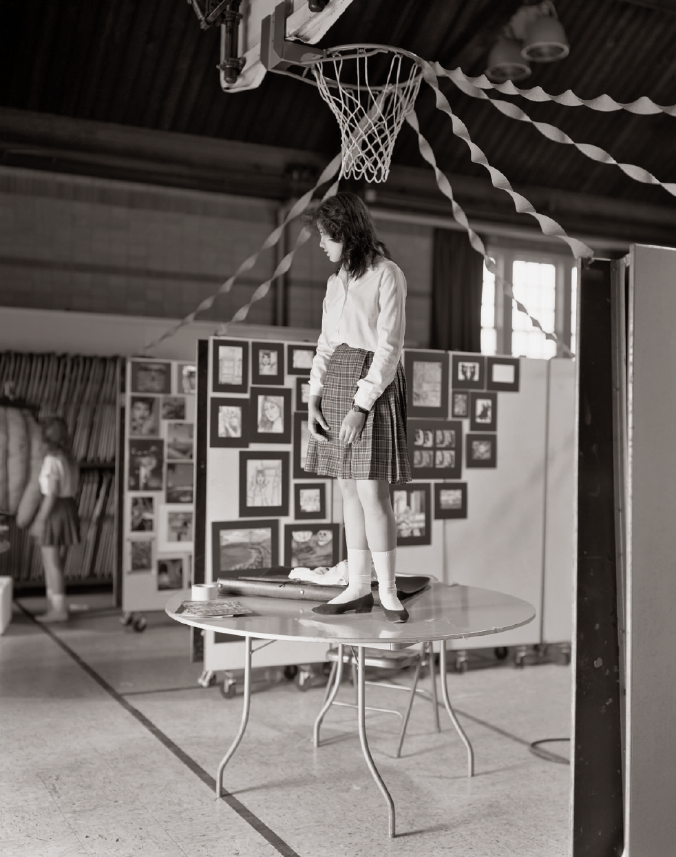 Ce livre comprend le travail de Brooklyn, ainsi que des photographies réalisées à l’époque dans deux écoles catholiques pour filles de New Haven. Tous les travaux ont été réalisés avec un appareil 8X10 et tirés au platine, une pratique que j’utilise toujours. L’influence des photographes dont je dévorais le travail, en particulier August Sander et Diane Arbus, est évidente. Les germes de mes futurs projets se trouvent tous dans ce livre. Avec les filles catholiques, j’ai lancé une habitude de travail obsessionnelle qui durera toute ma vie et que je ne souhaiterais peut-être pas à quelqu’un qui m’est cher. Avec le recul de ces quarante années, je crois que je n’avais pas vraiment le choix. Je reste très reconnaissante à tous ceux qui m’ont soutenue au fil des décennies, y compris les filles incroyables qui ont généreusement offert leur temps pour être photographiées en 1984. » Andrea Modica