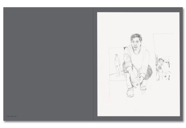 Collier Schorr a commencé à dessiner des photographies qu’elle avait prises de l’artiste Nicole Eisenman en 2020, une pratique solitaire qui trouve son origine dans la fascination du sosie et la possibilité de voir son propre visage dans un autre. Bien que Schorr et Eisenman se connaissent depuis les années 1980, les photographies utilisées sont récentes, aussi bien formelles que les prises de vue pour T Magazine et le New Yorker, que désinvoltes comme les selfies pris dans les cafés de quartier et les visites de studio. Ce volume, structuré selon le style narratif unique de Schorr, rassemble des portraits dessinés, des selfies et des autoportraits, à la fois mis en scène et candides, dans des espaces reconnaissables et qui émergent de la page blanche.