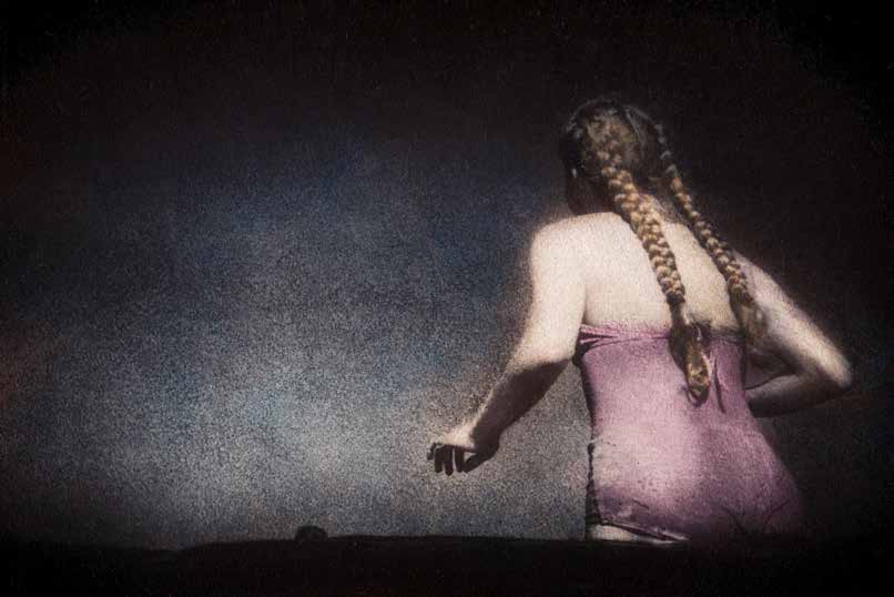 Enfant, il y a les visages graves et parfois douloureux des adultes qui se taisent quand elle entre dans la pièce, puis des phrases qui arrivent par bribes au fil des ans. Des noms et des lieux qui s’inscrivent dans le souvenir avant même de savoir à qui ou à quoi ils correspondent. Dans cette quête photographique menée entre 2018 et 2020, le fil conducteur est le nom de ces lieux marqués par l’Histoire : Munich, Dachau, Prora, Nüremberg, Prague, Tere- zin, la Tanière du Loup, etc. En partant d’un tirage noir et blanc qu’elle réhausse à la peinture à l’huile, elle accentue l’absence de repères entre passé et présent, la confusion entre rêve et réalité pour fusionner mémoire intime et mémoire historique.