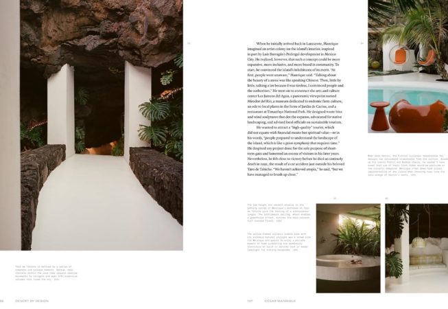 Molly Mandell et James Burke, deux habitants du désert texan, sont partis à la recherche de plus de trente espaces incroyables et ont appris à connaître les personnes qui les ont créés. En termes de superficie, les déserts représentent un tiers de la masse continentale de la Terre. Mandell et Burke avaient donc beaucoup de chemin à parcourir, passant par le sud-ouest des États-Unis, le Mexique et l’Argentine, et traversant l’océan pour se rendre en Égypte, au Maroc, en Espagne et en Jorda-nie. Ils se sont aventurés en Inde et dans un micro-désert en Nouvelle-Zélande. Ils ont visité des hauts et des bas déserts, des déserts urbains et des déserts ruraux, des déserts sablonneux et des déserts broussailleux. Ils ont tout photographié, des espaces désertiques emblématiques, comme ceux habités par Yves Saint Laurent, César Manrique et Donald Judd, tout en interviewant les chorégraphes, les hôteliers, les sculpteurs, les écologistes, les chefs, les ingénieurs du son, les défenseurs de l’environnement et bien d’autres encore qui ont créé ces lieux remarquables.