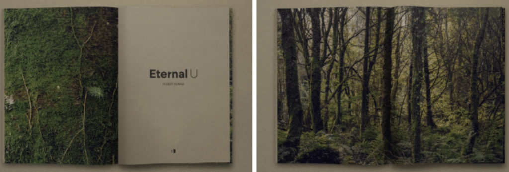 Eternal U est le deuxième, après Death Landscapes, projet éditorial commun d’Hubert Humka et de Blow Up Press. Le livre a été créé dans l’esprit du développement durable, du respect du monde et de la nature environnante, sur des papiers recyclés écologiques. Son axe principal est constitué de photographies de la forêt, accompagnées de modifications négatives et d’un texte en relief sur le thème de la sortie. Les techniques graphiques utilisées symbolisent la perception du monde depuis l’autre côté et la trace que nous laissons derrière nous.