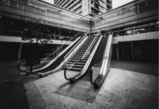 Pour clôturer cette recherche photographique de trois ans, Fakele a focalisé son regard sur le panorama urbain qui l’entoure. Guidé par une lumière, une perspective, un détail, le photographe entreprend une déambulation en étoile d’un an dans les différents quartiers de Montreuil. Pour cette recherche, il a choisi de revisiter l’un des principes les plus rudimentaires de l’histoire de la photographie, à l’aide d’un simple trou dans une boîte et d’une surface photosensible : le sténopé. L’infime diaphragme de ce procédé offre une profondeur de champs infinie, procurant à celui qui regarde une multitude de plans et de détails à observer.