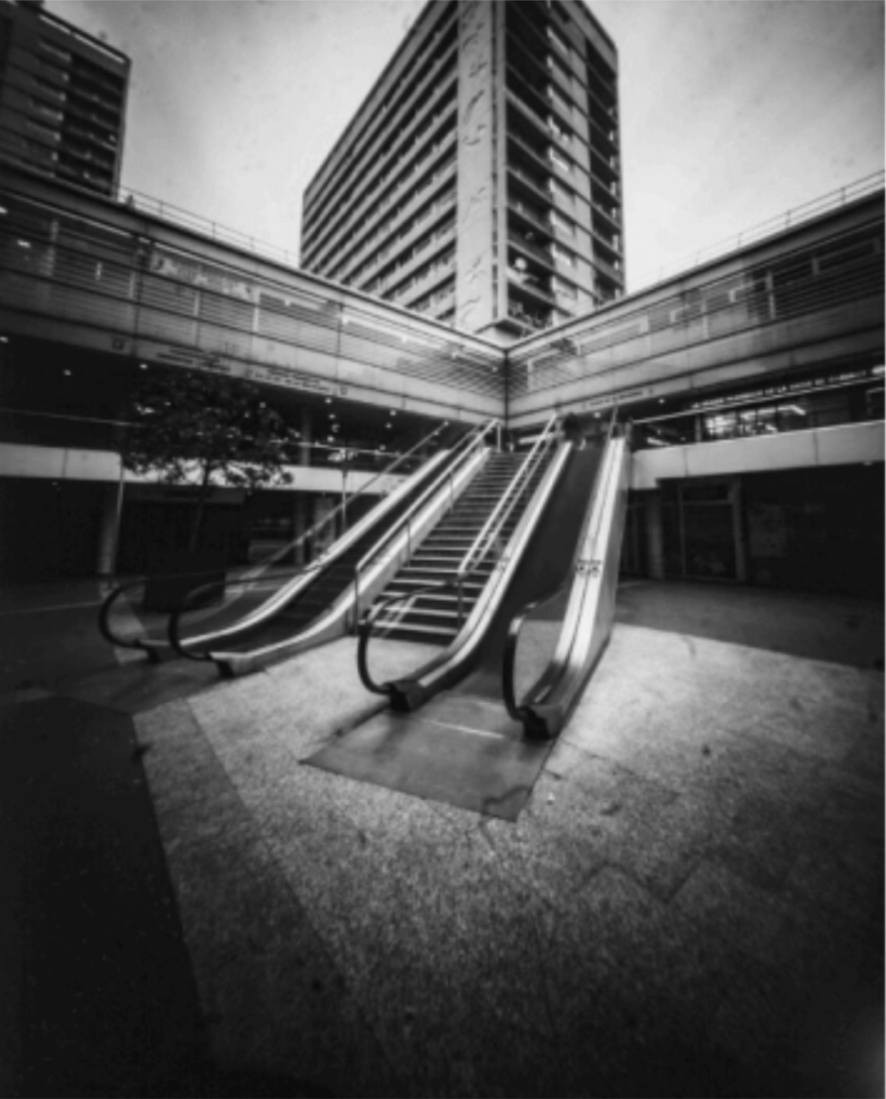 Pour clôturer cette recherche photographique de trois ans, Fakele a focalisé son regard sur le panorama urbain qui l’entoure. Guidé par une lumière, une perspective, un détail, le photographe entreprend une déambulation en étoile d’un an dans les différents quartiers de Montreuil. Pour cette recherche, il a choisi de revisiter l’un des principes les plus rudimentaires de l’histoire de la photographie, à l’aide d’un simple trou dans une boîte et d’une surface photosensible : le sténopé. L’infime diaphragme de ce procédé offre une profondeur de champs infinie, procurant à celui qui regarde une multitude de plans et de détails à observer.
