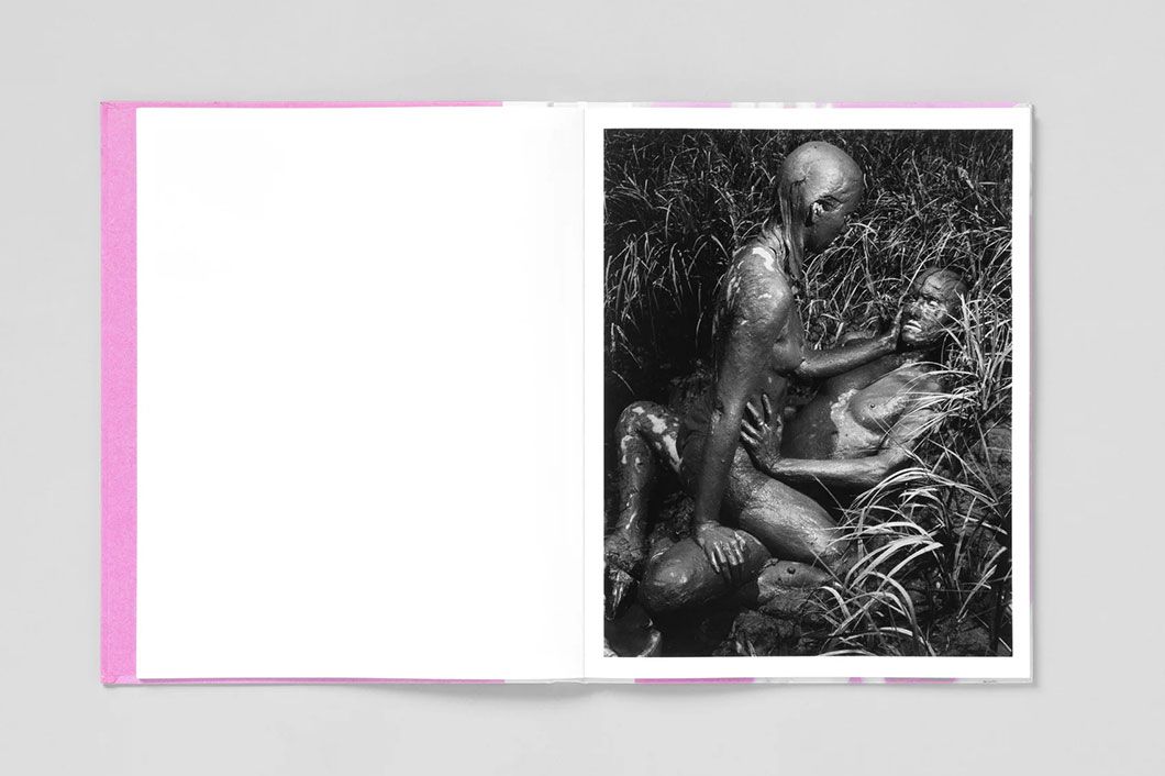 Ce livre couvre les deux premières années de la transition de Pia, alors qu’elle photographie sa communauté et l’hostilité et la beauté de la vie ici. Des photographies de papillons de nuit et de soie d’araignée incandescente, de corps imbibés de boue entrelacés, d’une maison en feu, d’animaux nocturnes, de famille, d’amis, d’amants et de rituels minutieux ornent des paysages inondés d’éclairs. Flowers Drink the River est une quête de beauté et d’évasion, de résistance, de sécurité et de magie.