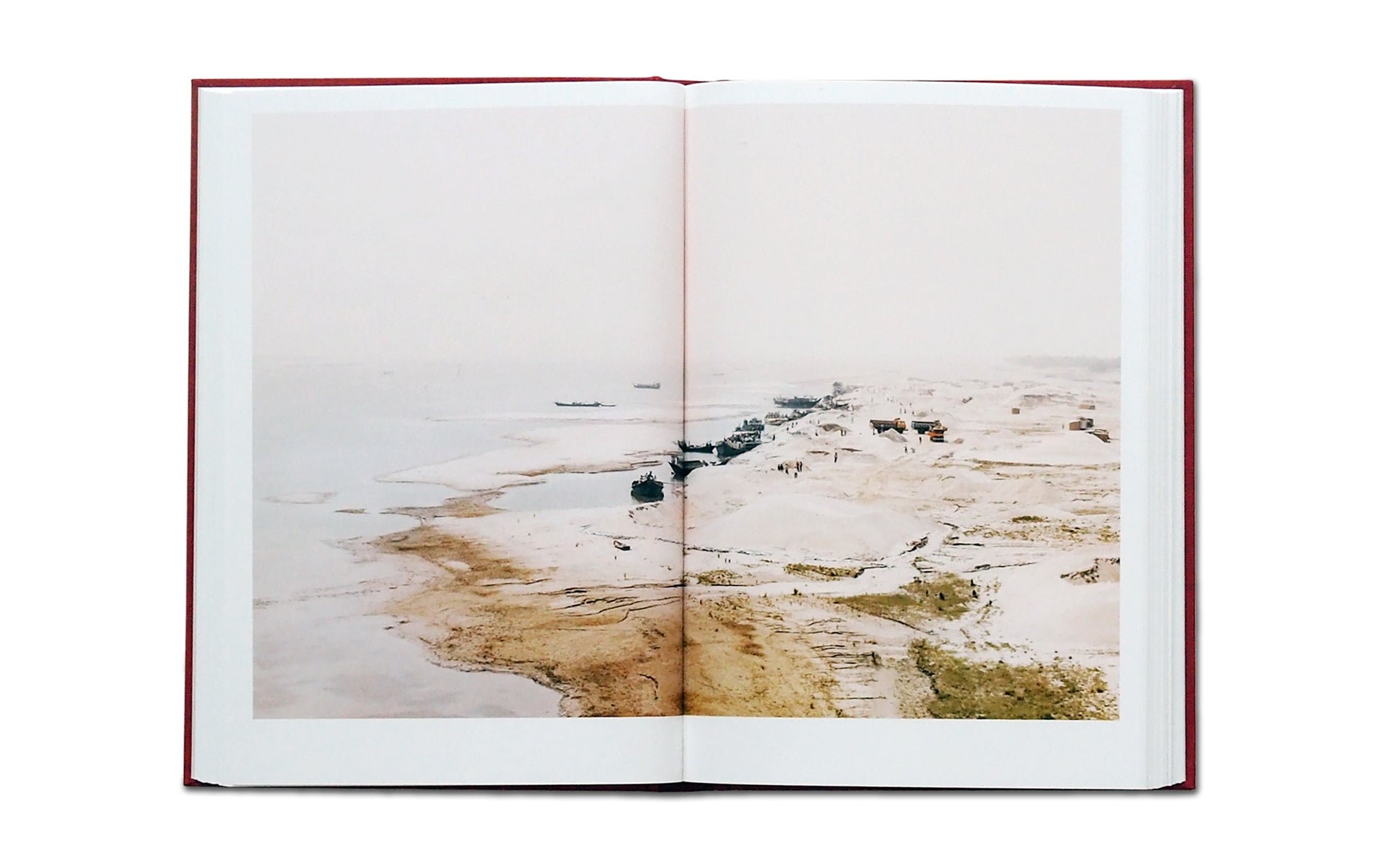 L’utilisation du moyen format par Gulio Di Sturco lui a permis de ralentir les choses, de se rapprocher de ses sujets et de permettre un niveau élevé de détail et de précision des couleurs. Les photographies du livre combinent une réponse esthétique et picturale au teint et à l’atmosphère du Gange avec des éléments du détachement observationnel de la photographie documentaire. Les points d’observation des vues panoramiques du livre montrent les structures artificielles telles que les ponts ou l’architecture illégale de l’exploitation du sable, et font écho à la tradition de la peinture de paysage épique. Ces images sont combinées avec des photographies prises sur les rives du fleuve, illustrant les effets de l’industrialisation à l’échelle humaine. Le livre comprend des textes de l’auteur et activiste environnemental, le Dr Vandana Shiva, et le conservateur Eimear Martin.