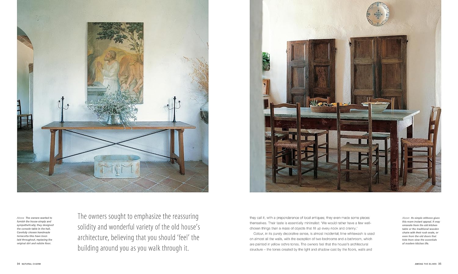 Ce livre inspirant est divisé en quatre parties. Natural Charm présente des maisons rustiques, caractérisées par une palette décorative terreuse, dont la décoration intérieure est enracinée dans les anciennes traditions rurales de la Toscane. Simplicité élégante s’intéresse aux interprétations modernes du style toscan, qu’il s’agisse d’une grange haute de plafond, devenue un loft lumineux, ou d’une école de village reconvertie.