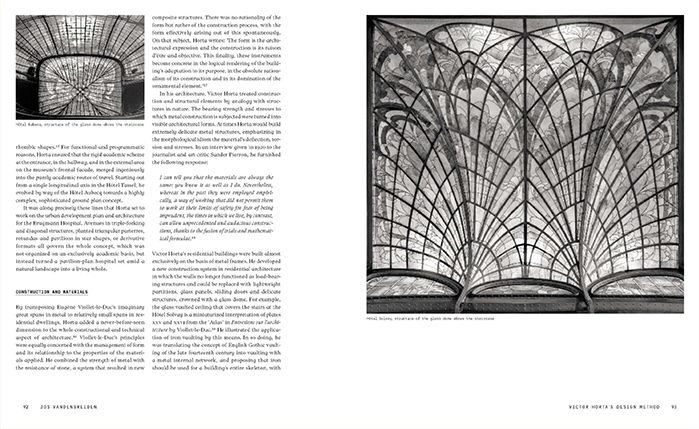 La première partie de l’ouvrage apporte un éclairage nouveau sur la boîte à outils de Victor Horta en se concentrant sur les sources architecturales d’une œuvre spécifique, la maison Tassel. Elle permet de comprendre où et comment Horta a conçu ses projets.