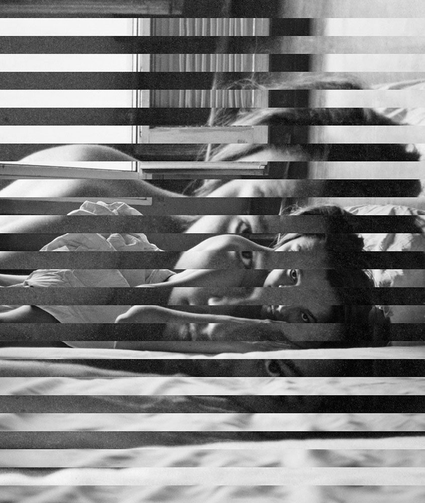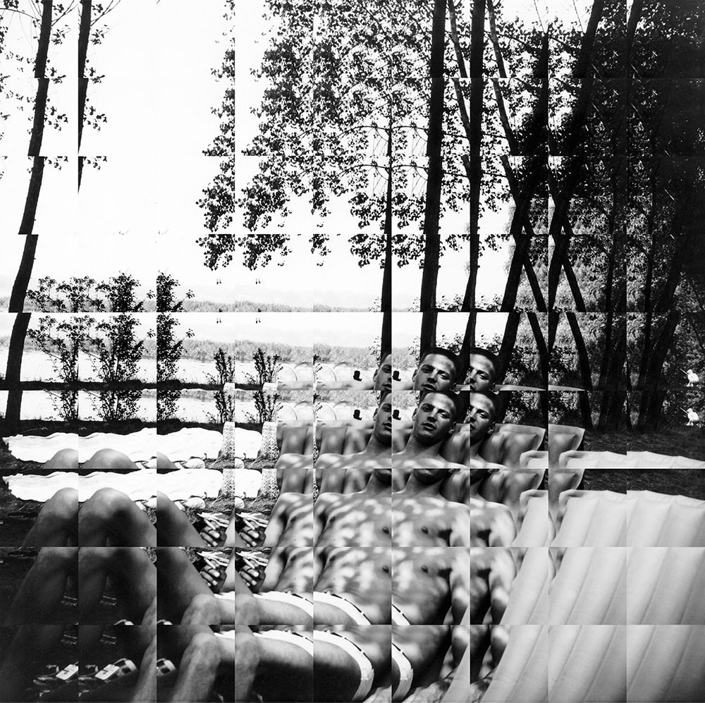 Agencement méticuleux de dizaines de fragments noirs et blancs, minces lames brillantes de papier photo, les collages jouent de la déformation et de la démultiplication des points de vue, créant des effets stéréoscopiques. Dans cette approche jubilatoire d’appropriation et de transformation des images planes et passéistes, Edouard Taufenbach partage sa fascination pour l’image amateur, vécue comme support de projections et de désirs.Pour cette série, Édouard Taufenbach n’a pas travaillé, comme à son habitude, avec des photographies qu’il aurait dénichées, mais à partir de la collection d’images anonymes que le réalisateur Sébastien Lifshitz réunit depuis plusieurs décennies. Sans doute était-ce pour lui la certitude de trouver des corpus cohérents et des clichés plus forts et plus rares que le tout venant de la photographie vernaculaire qu’il s’appropriait jusqu’alors. Même s’ils sont importants, comme en ont témoigné l’exposition et le livre Mauvais genre, cette collection ne se réduit pas aux thèmes de l’homosexualité et du travestissement. Guidé par Sébastien Lifshitz, Édouard Taufenbach y a, plus largement, puisé des photographies célébrant la liberté des corps, une liberté qui s’épanouit dans l’intimité mais aussi au contact de la nature, tout particulièrement, au bord de l’eau.