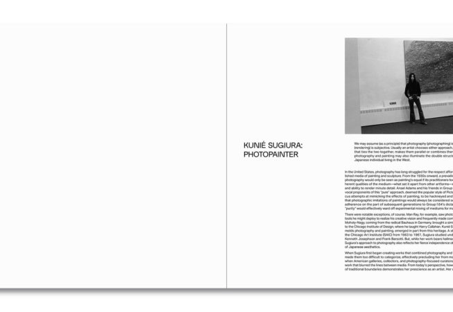 Sugiura n’a cessé de bouleverser les conventions de la photographie en utilisant de nouveaux matériaux pour créer des œuvres à plusieurs niveaux. Ses intérêts pour la corporalité, le monde naturel et les paysages urbains imprègnent ses projets variés et expérimentaux, qui intègrent des images psychédéliques et solarisées, des photographies imprimées sur toile, des photogrammes et des radiographies. Faisant écho à son identité de Japonaise ayant vécu la majeure partie de sa vie à New York, son travail hétérogène constitue une exploration générative des formes hybrides qui remet en question les définitions singulières.
