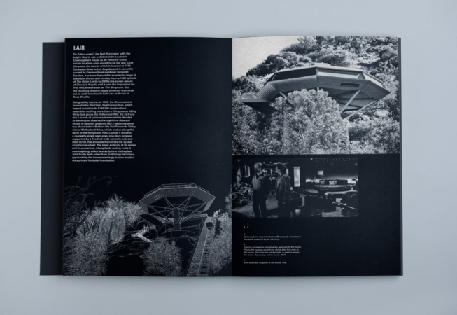 Dans Lair, qui apprécie et célèbre tout ce qui a trait aux méchants, la culture pop et l’architecture se rejoignent dans ces maisons farfelues. Des fantaisies futuristes aux ruches chargées de pièges mortels, des habitations dans l’espace à celles sous la mer, Lair présente les maisons de méchants de quinze films, dont Dr. Strangelove, Les Indestructibles, Blade Runner 2049, et Ex Machina.