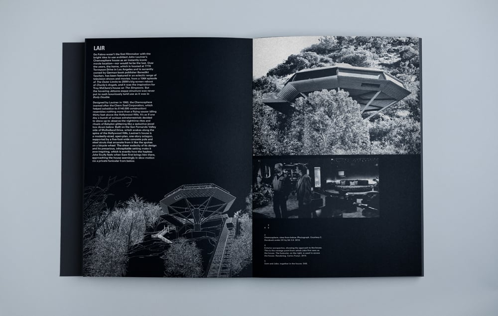 Ce livre primé, imprimé à l’encre argentée sur un luxueux papier noir, explore la conception architecturale de ces structures au moyen d’illustrations, de rendus architecturaux, de photographies, d’essais, d’analyses de films, d’entretiens, etc.