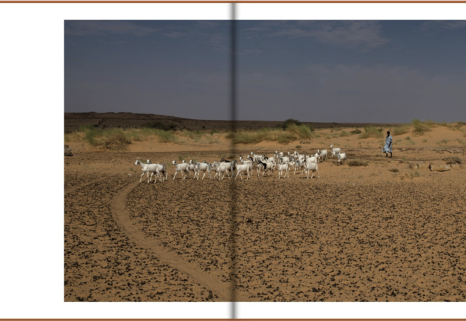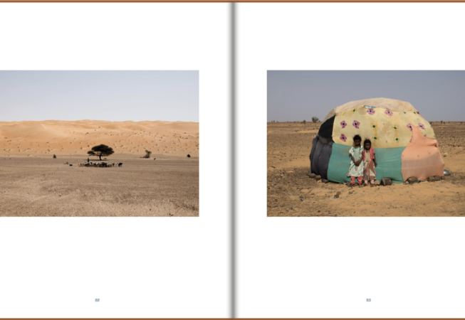 Introduit par une préface de l’écrivain mauritanien Mbarek Ould Beyrouk, le livre est rythmé en six chapitres ponctués de poèmes de l’autrice franco-mauritanienne Mariem Derwich traduits en arabe. La langue de la poétesse, imagée et mélodieuse, accompagne magnifiquement la beauté des images comme un murmure au milieu de ce silence infini.