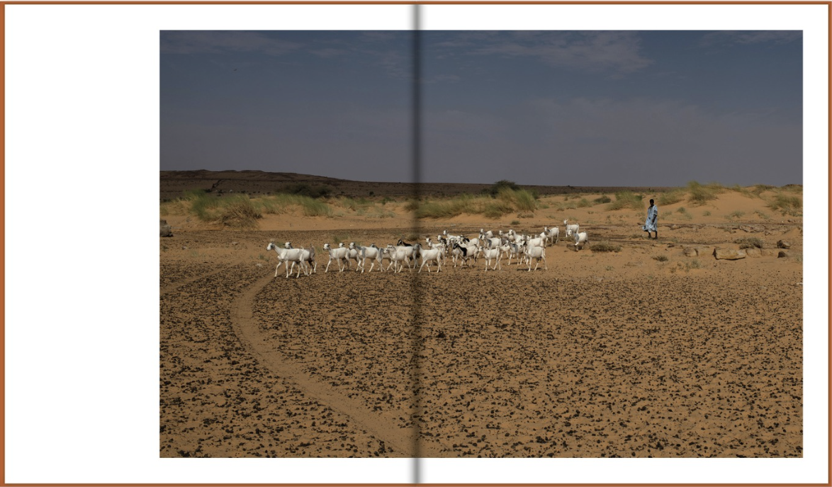 Introduit par une préface de l’écrivain mauritanien Mbarek Ould Beyrouk, le livre est rythmé en six chapitres ponctués de poèmes de l’autrice franco-mauritanienne Mariem Derwich traduits en arabe. La langue de la poétesse, imagée et mélodieuse, accompagne magnifiquement la beauté des images comme un murmure au milieu de ce silence infini.
