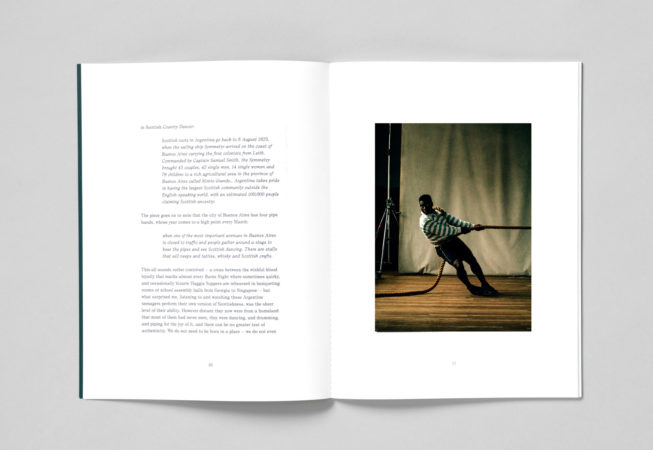 Présenté sous la forme d’une édition limitée en deux volumes, comprenant un livre cartonné d’images des Jeux et un second volume cousu de portraits des participants aux Jeux. Ce volume comporte également un texte détaillé du poète primé John Burnside, qui met en lumière la manière dont les Écossais et la diaspora écossaise ont remodelé la forme des Jeux pour l’adapter à leurs besoins culturels. Burnside est décédé peu de temps après avoir achevé son magnifique texte.