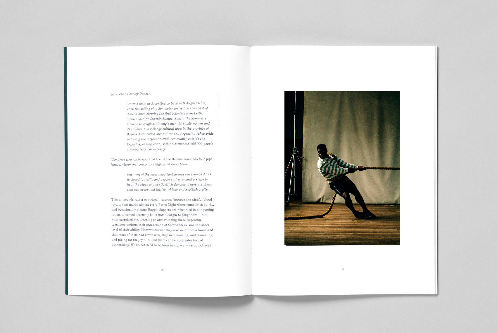 Présenté sous la forme d’une édition limitée en deux volumes, comprenant un livre cartonné d’images des Jeux et un second volume cousu de portraits des participants aux Jeux. Ce volume comporte également un texte détaillé du poète primé John Burnside, qui met en lumière la manière dont les Écossais et la diaspora écossaise ont remodelé la forme des Jeux pour l’adapter à leurs besoins culturels. Burnside est décédé peu de temps après avoir achevé son magnifique texte.