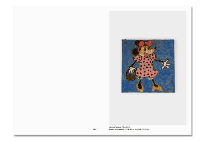 Cette publication rassemble plus de 140 œuvres réalisées au cours des vingt-cinq dernières années par l’artiste américano-vénézuélienne Magdalena Suarez Frimkess. Les sculptures en céramique fabriquées à la main de Frimkess sont ornées de décorations vives mêlant des figures mythologiques à des personnages de dessins animés dans des tableaux vivants. Parmi eux, Minnie et Mickey Mouse, Betty Boop, Popeye, Félix le chat et le héros chilien Condorito sont des personnages récurrents, tous tendrement mais étrangement rendus en grès émaillé et souvent dans des réimaginations surréalistes de leurs mésaventures familières.