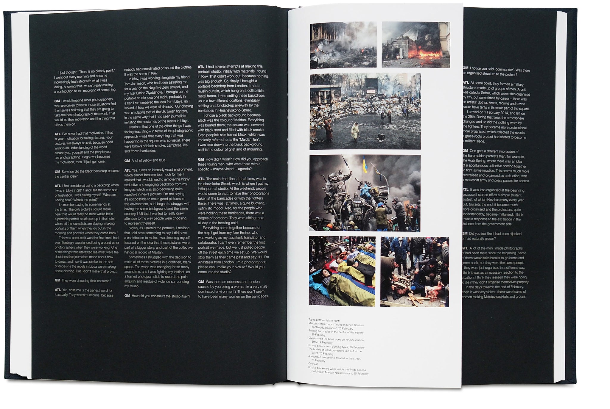 Maidan ; Portraits from the Black Square par Anastasia Taylor-Lind est une série de portraits de manifestants faites dans un studio de photographie improvisé à Maidan Nezalezhnosti (Place de l’Indépendance), Kiev en février 2014.