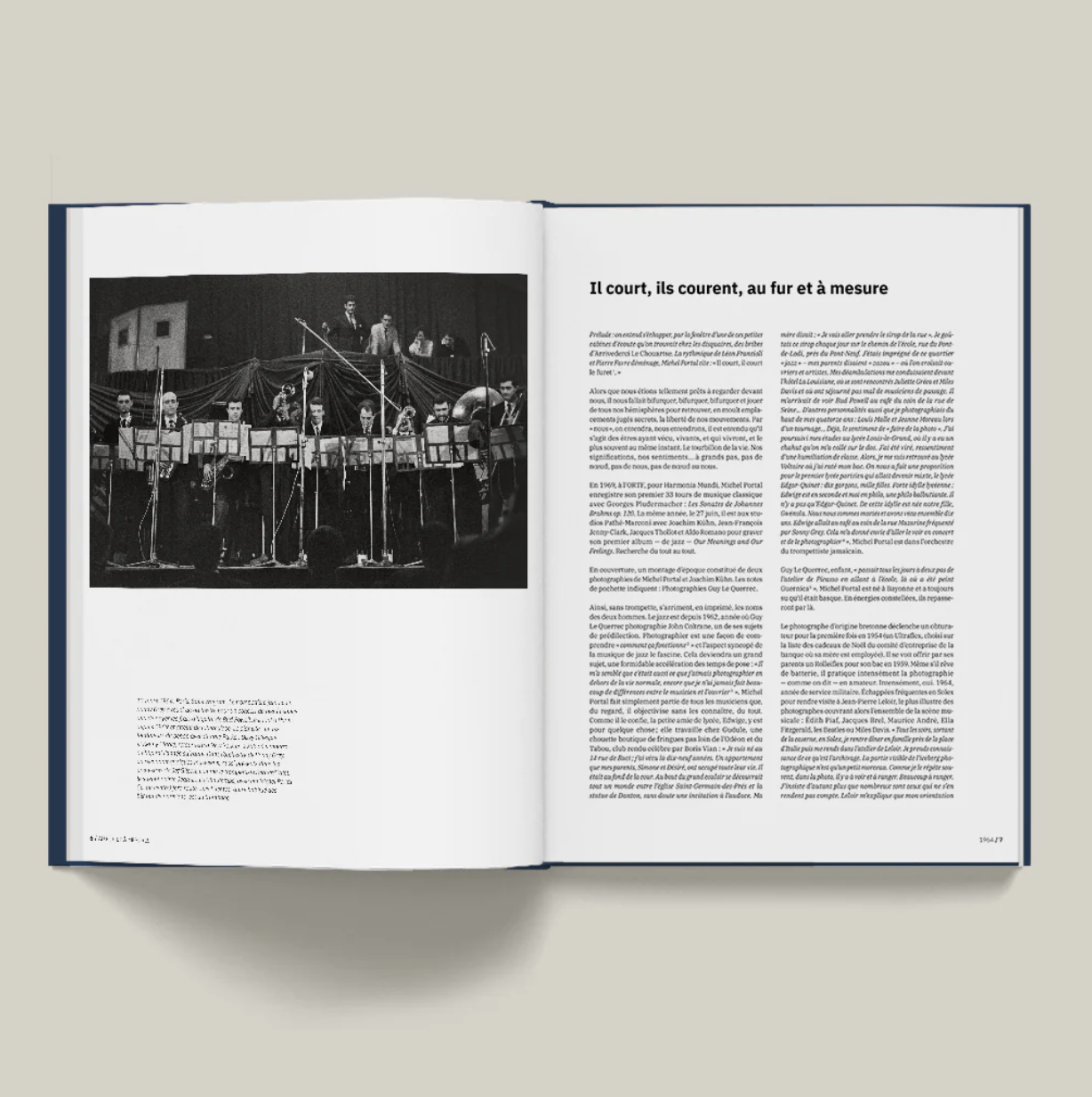 En 1964, Guy a juste 23 ans lorsqu’il photographie pour la première fois Michel, alors Sideman dans un orchestre de Be-bop. 47 ans plus tard, en 2011, Le Querrec prendra sa dernière image de Portal. Entre ce deux instants fixés sur pellicule, un long compagnonnage teinté d’amitié prendra vie. De New York à Paris, de Minneapolis à Arles, De les deux compères vivent leurs brillantes aventures, leurs carrières, sans jamais vraiment se quitter.