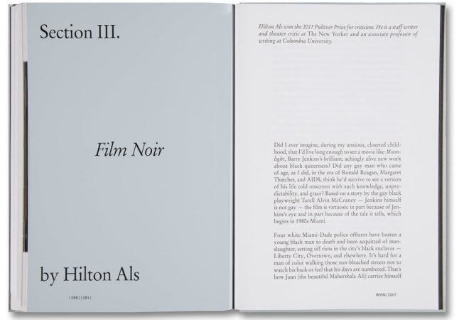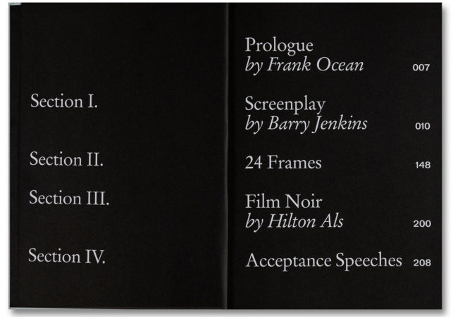 Avec une préface de Frank Ocean, le scénario de Barry Jenkins et Tarell Alvin McCraney, récompensé aux Oscars, comporte un essai de Hilton Als et les discours d’acceptation de la soirée historique des Oscars de Moonlight.