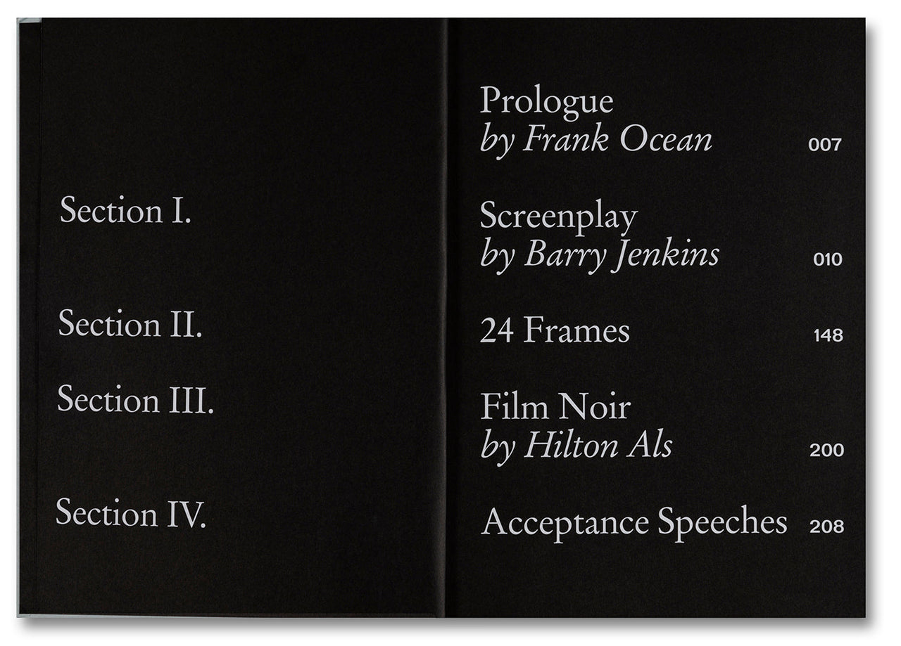 Avec une préface de Frank Ocean, le scénario de Barry Jenkins et Tarell Alvin McCraney, récompensé aux Oscars, comporte un essai de Hilton Als et les discours d’acceptation de la soirée historique des Oscars de Moonlight.