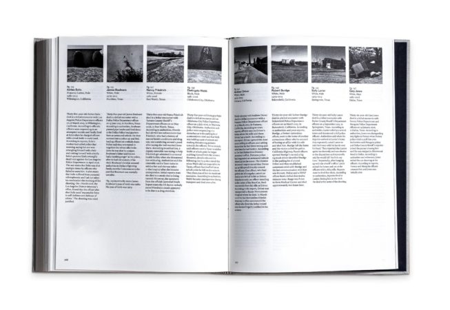 Auparavant, Diana Matar, une Américaine vivant à Londres, a passé des années à documenter les sites de violence soutenue par l’État en Afrique du Nord, en Europe de l’Est et en Europe méridionale. En 2015, elle a tourné son objectif vers son propre pays et a commencé à rechercher qui, comment et où les citoyens mouraient lors d’affrontements avec la police aux États-Unis. Elle a créé des cartes détaillées dans son studio et compilé des informations sur chaque victime décédée en 2015 et 2016.