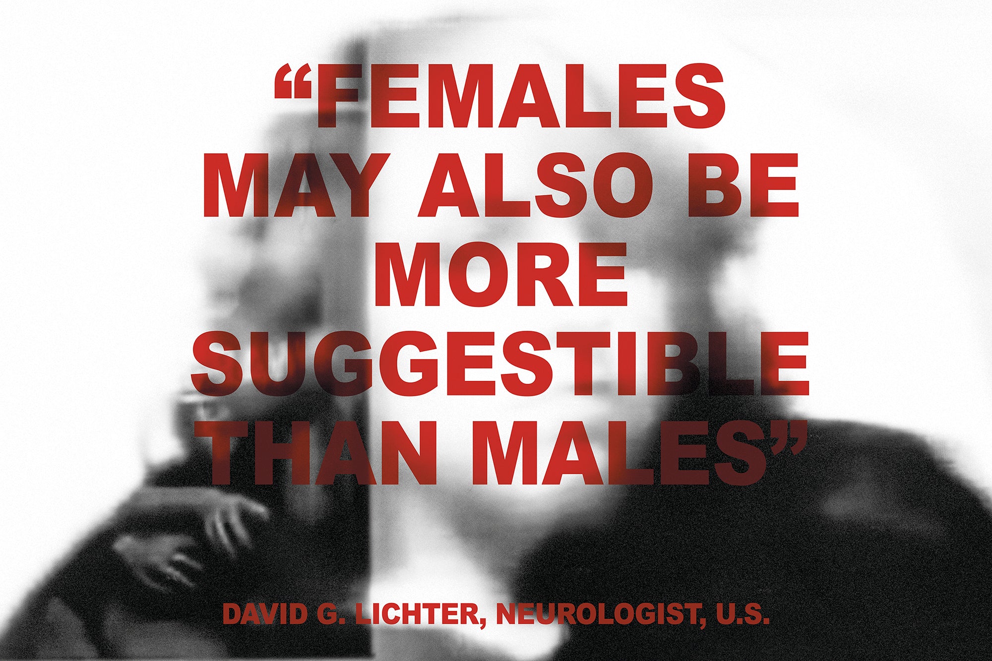 Le chapitre de genèse de A History of Misogyny, intitulé On Mass Hysteria, étudie la possibilité d’un ancien proto-langage féminin de protestation. Le projet remet en question l’approche psychologique dominante qui rend les femmes responsables de maladies médicalement inexpliquées. Il met plutôt l’accent sur l’impact de facteurs sociétaux tels que l’oppression sociale et politique. Laia Abril interroge la conception occidentale, en particulier l’hypermédicalisation qui fait fi de la souffrance des femmes, et tend à négliger les explications fondées sur les croyances spirituelles et les forces de l’esprit. On Mass Hysteria vise à visualiser la douleur collective des traumatismes transgénérationnels, souvent ignorés ou diminués par la société, transmis par les femmes.