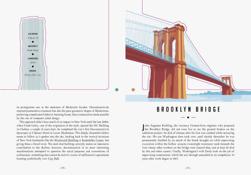 New York City est synonyme d’architecture remarquable. Ses imposants gratte-ciel et son horizon immédiatement reconnaissable définissent l’idée de la ville moderne – grande, audacieuse, magnifiquement conçue et futuriste. Star d’un million de films hollywoodiens et source d’inspiration pour la littérature, l’art et la culture depuis sa fondation, les structures uniques de New York s’étendent de l’épopée au quotidien.