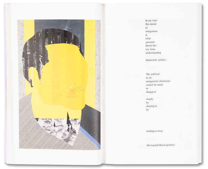 En 2009, l’artiste Anna Ostoya a créé un livret avec des collages textuels à partir d’un essai de la théoricienne politique Chantal Mouffe, «Politics and Passions: The Stakes of Democracy» (2002). Dans cet essai, Mouffe a critiqué la politique alors dominante «au-delà de la gauche et de la droite» du néolibéralisme et a mis en garde contre ses dangers – la montée des partis populistes de droite. Fascinée par les idées étonnamment prophétiques de Mouffe, ainsi que par son appel audacieux à lutter contre le statu quo afin de radicaliser la démocratie et de prévenir la violence, Ostoya est revenue au livret en 2019.