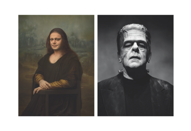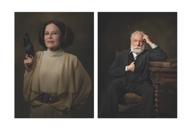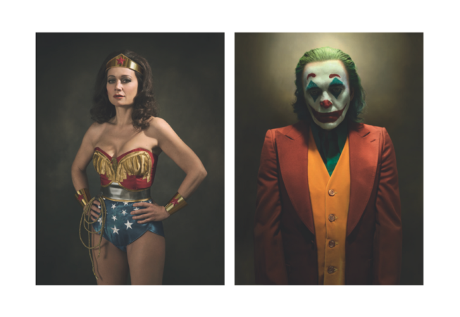 La série de photographies en couleur et en noir & blanc, Portraits Croisés, nous offre une vision de la culture à la fois positive et réjouissante dans laquelle se mêlent les grands classiques des siècles derniers (Molière, Victor Hugo, Beethoven…) aux contemporains (Wonder Woman, Pac Man, Dallas…).