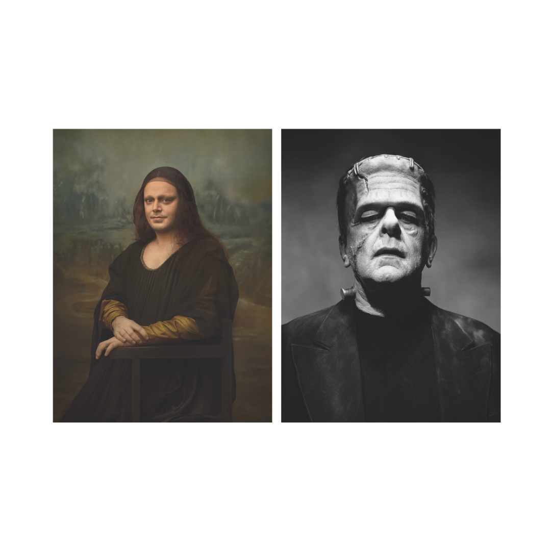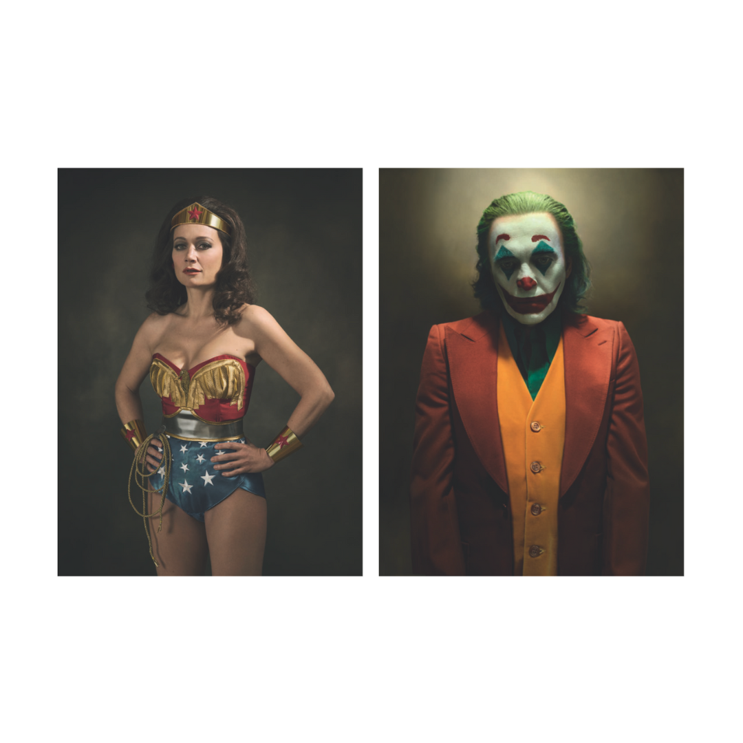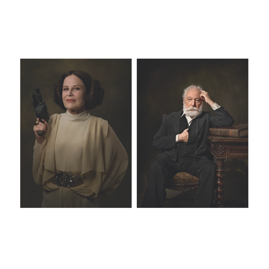 La série de photographies en couleur et en noir & blanc, Portraits Croisés, nous offre une vision de la culture à la fois positive et réjouissante dans laquelle se mêlent les grands classiques des siècles derniers (Molière, Victor Hugo, Beethoven…) aux contemporains (Wonder Woman, Pac Man, Dallas…).