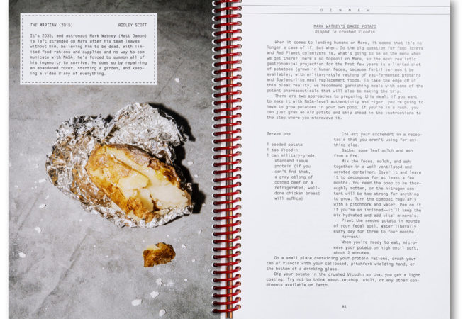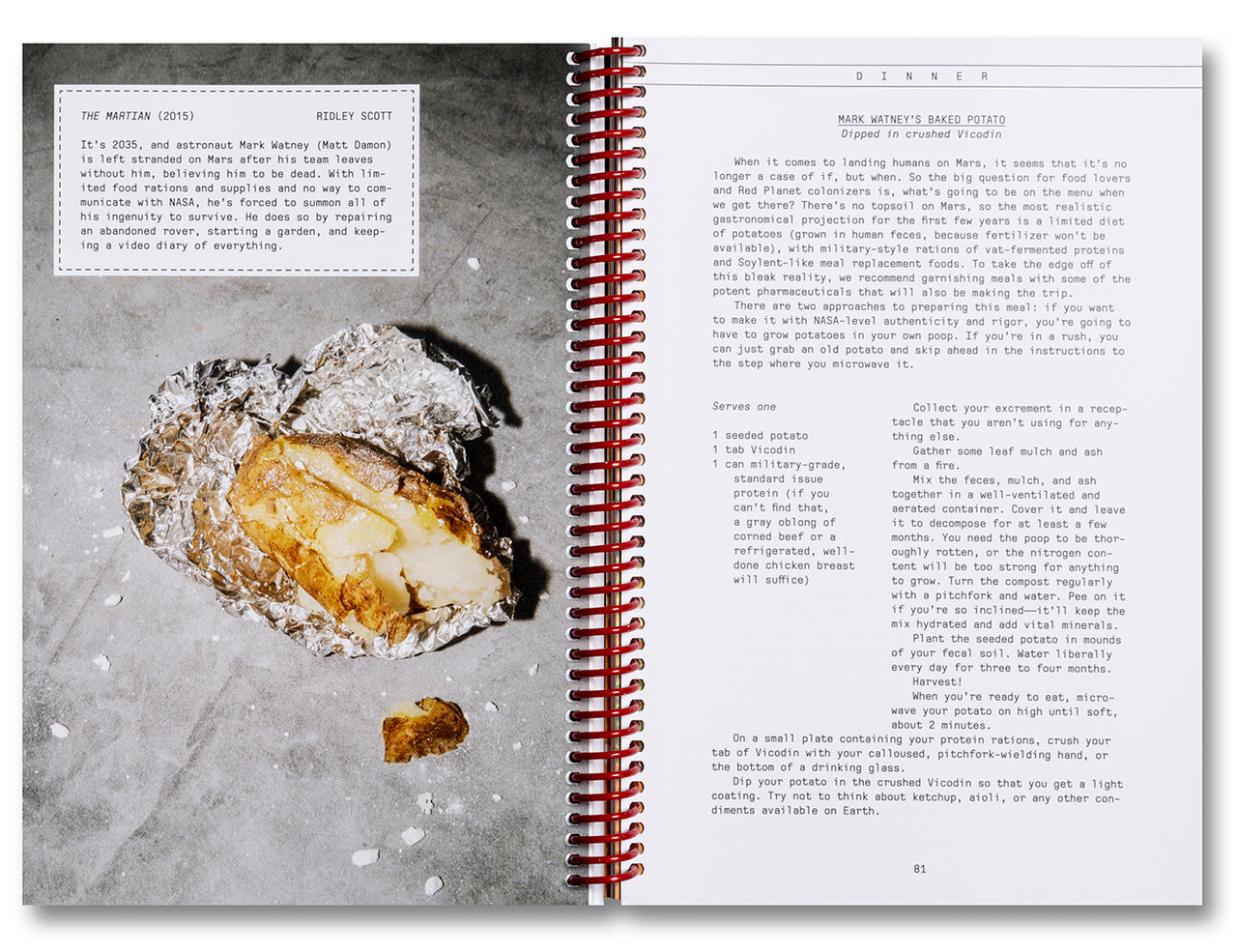 Décrit comme une « collection de recettes de fin de soirée et de plats ingénieux du fond du garde-manger », ce livre de cuisine chaotique présente des recettes issues de films