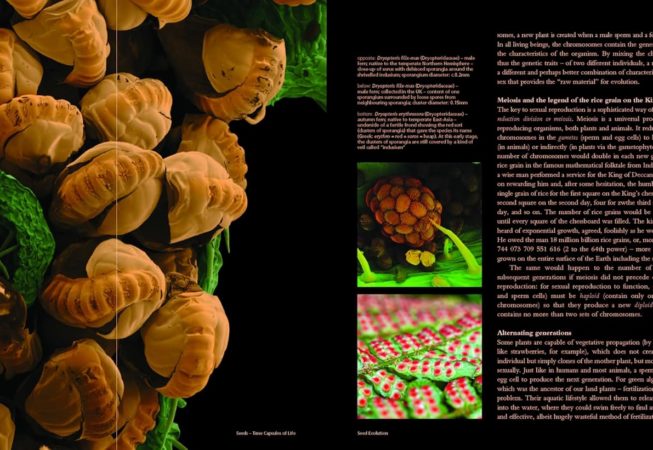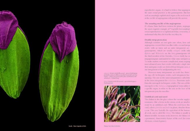 Dans ce livre étonnant, l’artiste Rob Kesseler et le botaniste Wolfgang Stuppy, anciennement de la banque de graines du millénaire de Kew, présentent une histoire naturelle des graines unique et très inhabituelle. L’histoire de l’évolution des graines pour assurer la survie de leur espèce et de leur adaptation à leur en-vironnement naturel, y compris aux animaux avec lesquels elles le partagent, est illustrée de manière stu-péfiante, en combinant des photographies en gros plan et des micrographies électroniques à balayage améliorées numériquement.