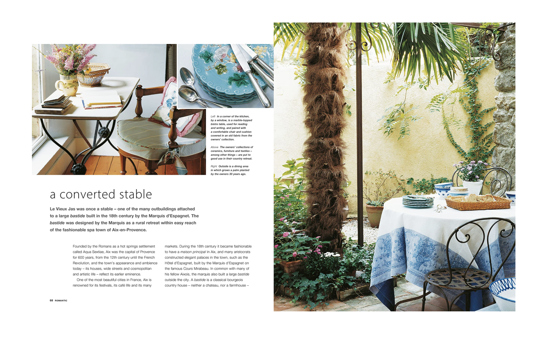 Imaginez les étés en France et qu’est-ce qui vous vient à l’esprit ? La lumière chaude du soleil sur une terrasse en pierre. Les abeilles bourdonnant au milieu d’une mer de lavande. Se promener dans un marché local et remplir un panier de pain, de fromage et de pêches mûres. Siroter du vin à la tombée de la nuit, puis manger aux chandelles dans l’air chaud du soir. Ces aspects font appel à tous les sens, tout comme le style décoratif caractéristique de la France rurale.