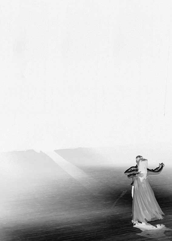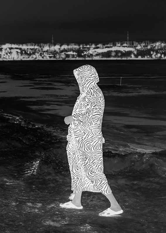 Les câbles électriques découpent des tessons de ciel carbone. Plantés dans la neige sombre ou la boue blanche : des poteaux nus, des masures détruites, des statues de Lénine… Quant aux êtres humains, ils sont sans visage. Comme saisis en vision thermique, ils apparaissent en surbrillance, réduits à leur condition de cibles. Réfléchir en négatif, c’est considérer l’absence. La photographie en couleur est le domaine de l’humanité et de la souffrance ; le noir et blanc celui de l’Histoire et de la tragédie.