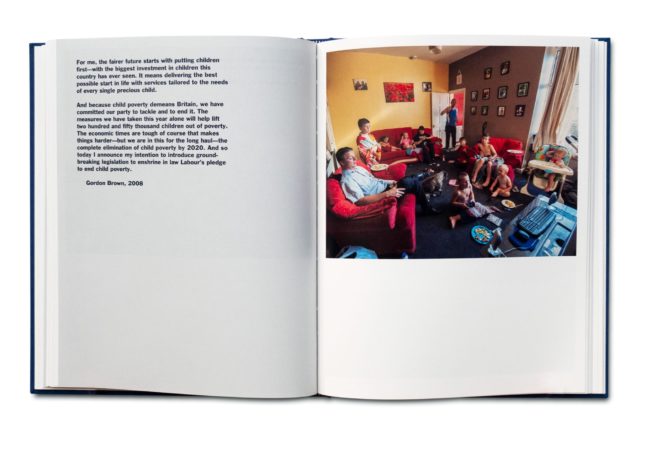 Thatcher’s Children, un projet à long terme du photographe Craig Easton, examine la nature intergénérationnelle de la pauvreté telle qu’elle est vécue par trois générations de la famille Williams dans le nord de l’Angleterre. Le passage du temps montré dans le livre démontre comment la privation est liée aux échecs des politiques sociales des gouvernements successifs.