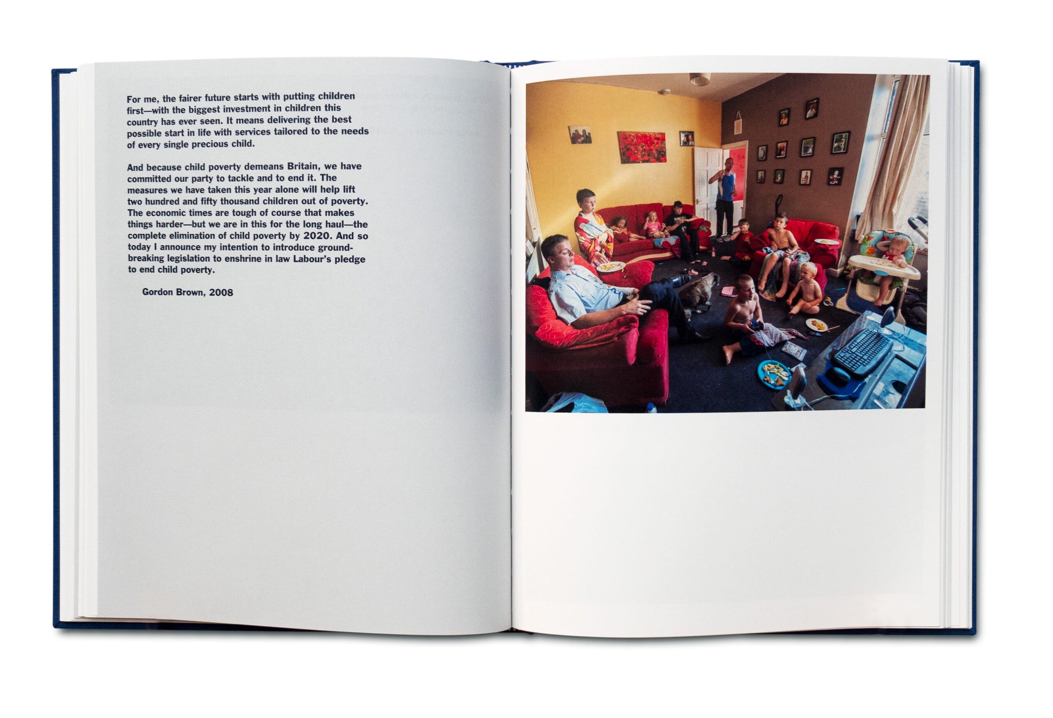 Thatcher’s Children, un projet à long terme du photographe Craig Easton, examine la nature intergénérationnelle de la pauvreté telle qu’elle est vécue par trois générations de la famille Williams dans le nord de l’Angleterre. Le passage du temps montré dans le livre démontre comment la privation est liée aux échecs des politiques sociales des gouvernements successifs.