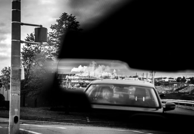 Les photographies de son livre à venir montrent des quartiers dynamiques et leurs habitants vivant à proximité et dans l’ombre de sites industriels pollués, ainsi que « l’usine à nuages », un site industriel indéfni qui fait référence à la fois à la raffnerie et à la grande usine de pâte à papier de la ville.