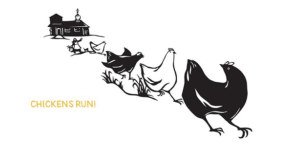 Ce livre d’images sur quatre poulets qui fuient leur poulailler pour la journée partent dans la nature sauvage de l’Alaska. Contient les illustrations de Nikki McClure et leur couverture en papier découpé. L’histoire est issue de la propre expérience de l’auteur à Spruce Island, en Alaska. En juin 1998, Nikki a vécu avec un petit groupe de moines, où elle a aidé à rassembler de la nourriture et à s’occuper des poules.