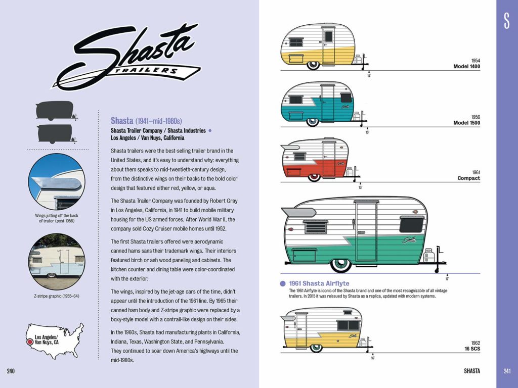 Un guide complet sur les remorques d’époque réalisées par la centaine de fabricants les plus populaires, d’Airstream à Zipper, comprenant un bref historique des fabricants et des illustrations des modèles de remorques par année montrant leur identification. Le Guide de terrain illustré de Vintage Trailers contient également un historique général des remorques vintage, une chronologie illustrée, un aperçu des styles de carrosserie typiques des remorques illustrant les formes des silhouettes, autres remorques rares et remarquables, barres latérales sur le style et les logos, et notes sur les rééditions et les modèles «rétro» modernes. Une sélection généreuse de photos en couleur de remorques anciennes est également incluse.