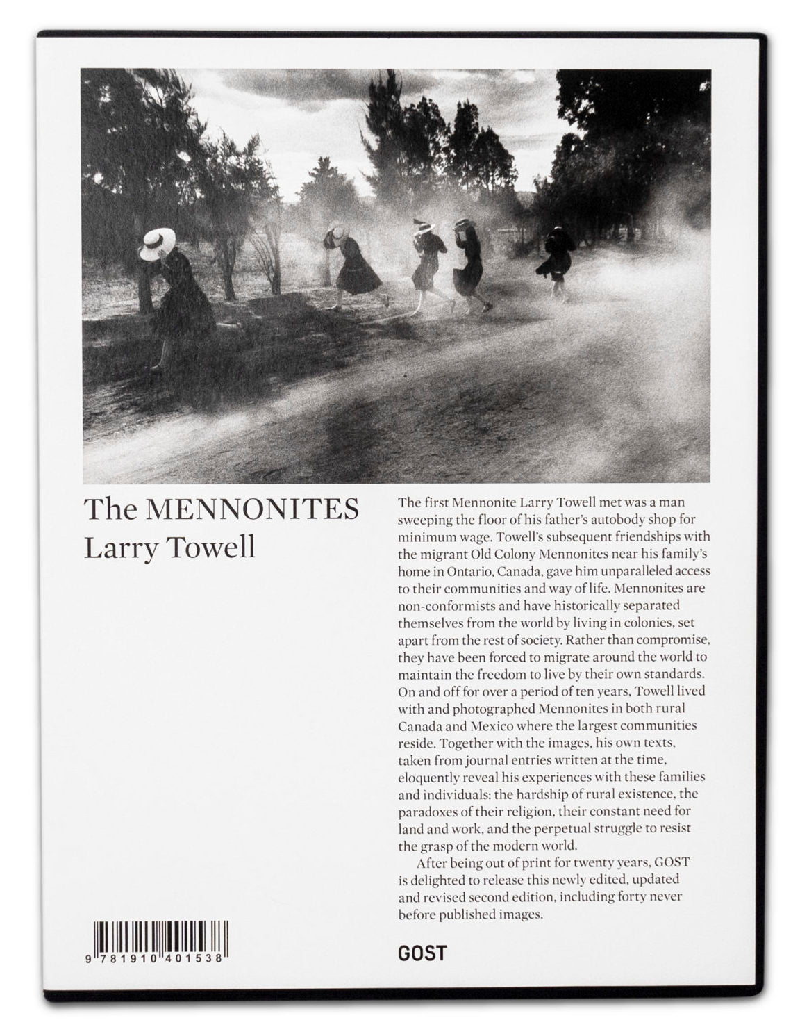 Larry Towell a photographié les mennonites de l’ancienne colonie dans les régions rurales de l’Ontario et du Mexique entre 1990 et 1999. Les photographies en noir et blanc qui en ont résulté, accompagnées d’un texte détaillé tiré de notes de journal et de «la boue de la mémoire», ont formé le livre phare de Towell, The Mennonites, publié pour la première fois en 2000. Cette deuxième édition révisée et mise à jour revisite le projet et comprend 40 photographies inédites.