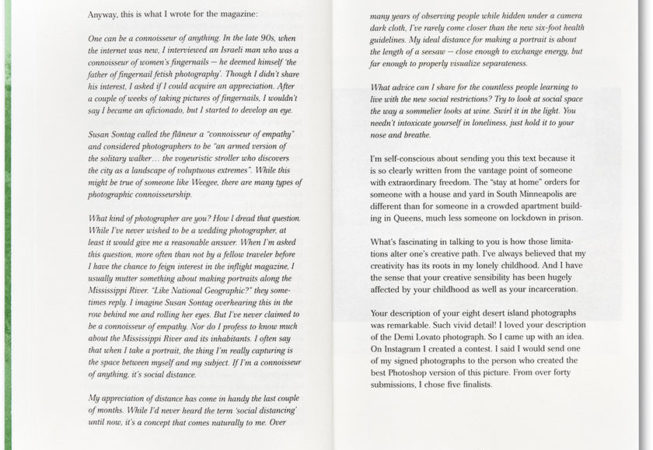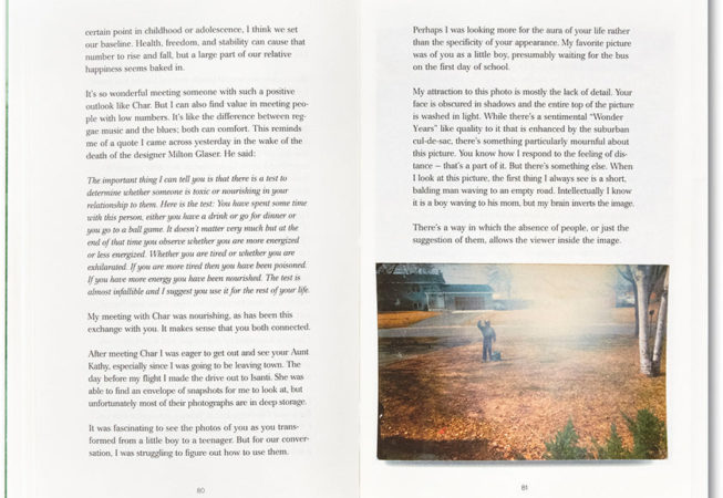 En janvier 2020, Alec Soth a reçu une lettre de Chris Fausto Cabrera, un détenu du Minnesota Correctional Facility à Rush City, demandant au photographe d’entamer un dialogue. Cette lettre a déclenché une correspondance étendue et perspicace au cours des neuf mois suivants, avec pour toile de fond la pandémie de Covid-19, le mouvement Black Lives Matter et l’agitation croissante qui touche le cœur de l’Amérique contemporaine.