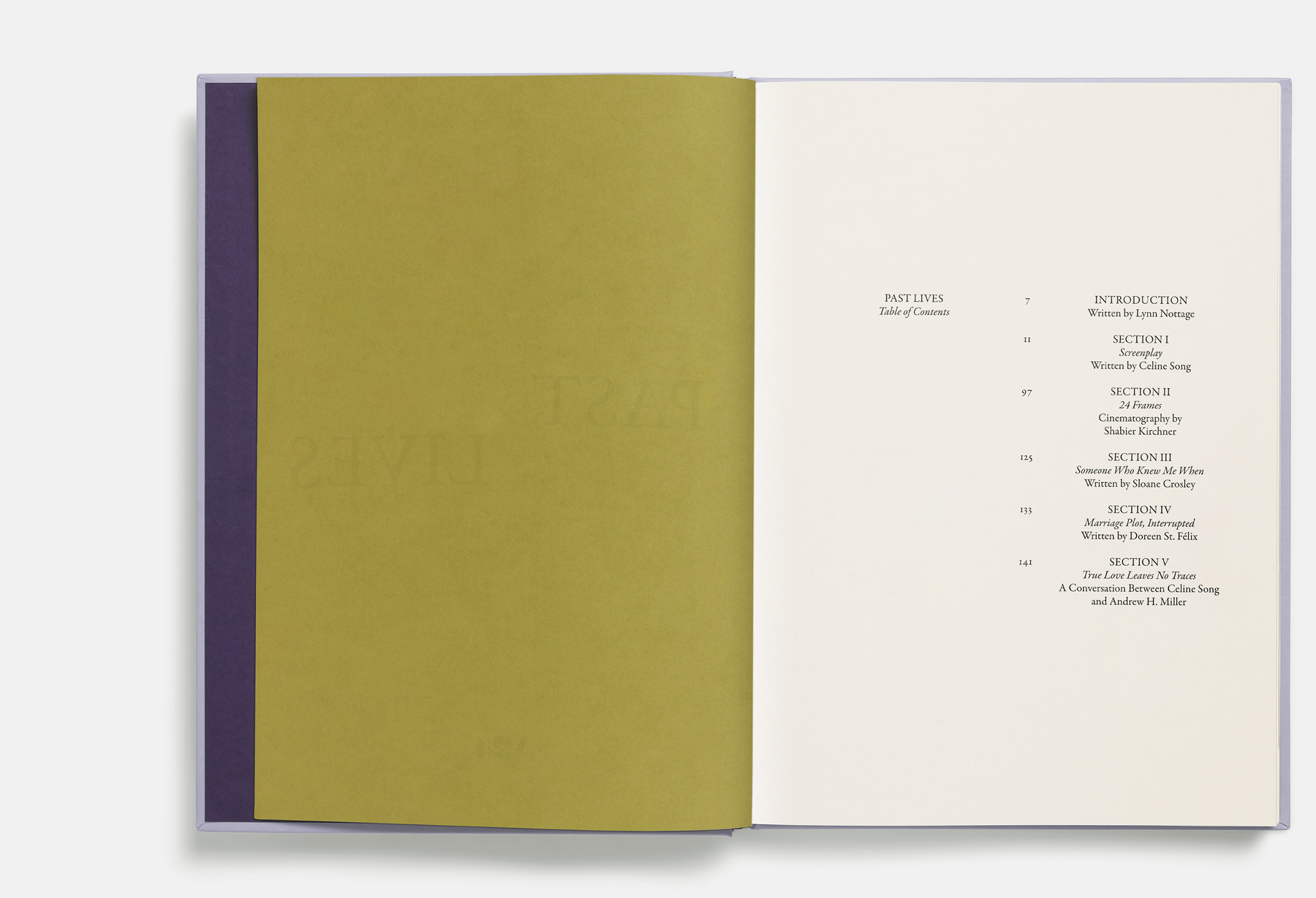 The Past Lives Screenplay Book comprend une introduction de la dramaturge Lynn Nottage, des essais de Doreen St. Félix et Sloane Crosley, une conversation entre Céline Song et un expert en « vies antérieures », ainsi que des documents sur les coulisses.